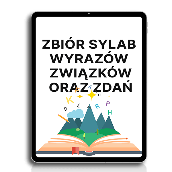Przed Tobą zbiór ponad 100 stron w formie PDF, który zawiera 23 głoski: sylaby, wyrazy (nagłos, sródgłos i wygłos jeśli jest), związki oraz zdania.