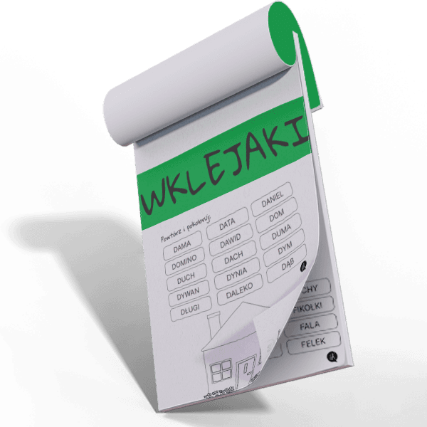 WKLEJAKI to zbiory wyrazów w formie ćwiczeń do wklejenia! Zawierają specjalne plansze dla 23 głosek, osobne dla każdej pozycji w wyrazie (nagłos, sródgłos i wygłos jeśli jest).